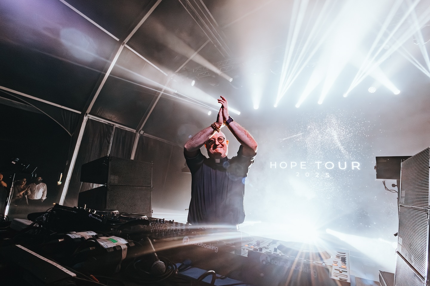 Son ascension a connu un tournant historique lors des Journées Mondiales de la Jeunesse (JMJ) de Lisbonne en 2023. Devant une foule impressionnante de 1,5 million de pèlerins, il a livré un set mémorable au lever du soleil, transformant le Champ de la Grâce en un dancefloor spirituel géant. Sa musique, qui navigue entre Melodic Techno et Progressive House, intègre subtilement des messages de paix, de fraternité et des extraits d’encycliques papales, créant une expérience immersive unique. Cette performance, devenue virale, a fait de lui une icône médiatique, l’amenant à se produire dans des clubs prestigieux d’Ibiza ou lors de grands festivals européens, tout en restant fidèle à ses engagements sacerdotaux et à sa vie de curé de campagne.