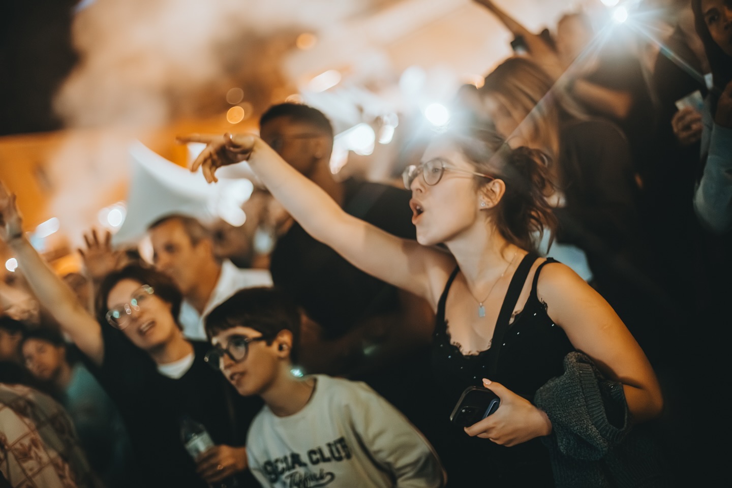 bras à la foule.